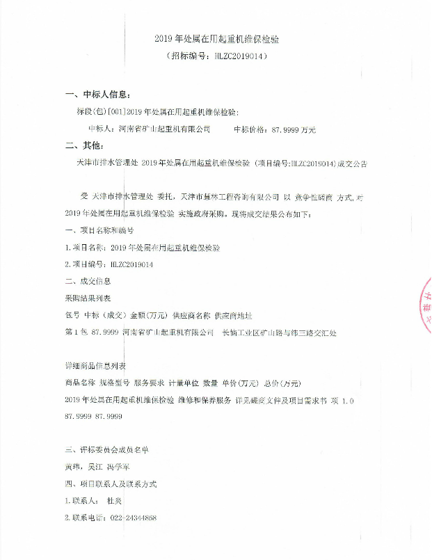 移動(dòng)版:2019年處屬在用起重機(jī)維保檢驗(yàn)中標(biāo)公告