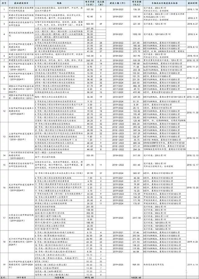 小編整理出了國家發(fā)改委正式批復軌交項目清單(2018.1.1-2019.6.20),并對獲批項目的具體的線路、項目里程、站點數量、建設工期、項目投資金額以及車輛及運行速度技術標準也進行了全部統(tǒng)計,信息量大,內容重要,建議收藏!