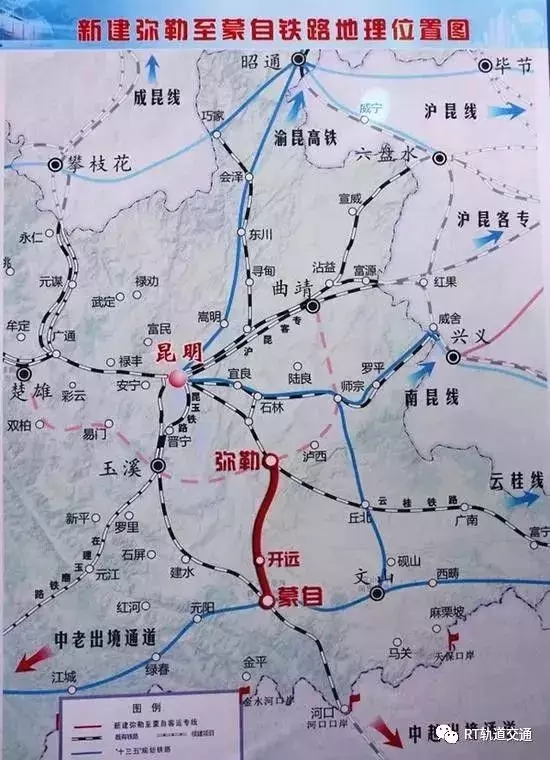 主要建設內容,線路北起云桂鐵路彌勒站,途經彌勒市、開遠市,南至紅河州蒙自市,新建正線彌勒至紅河機場站約107公里,共設5座車站。同步新建彌勒下行疏解線7公里,改建既有蒙自至河口鐵路約4公里。項目總投資136.2億元。