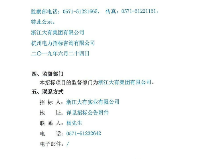 移動版:浙江大有實業(yè)有限公司電力建設分公司2019年度第一批起重運輸及鋼板租賃公開采購項目中標候選人名單及否決投標原因公示