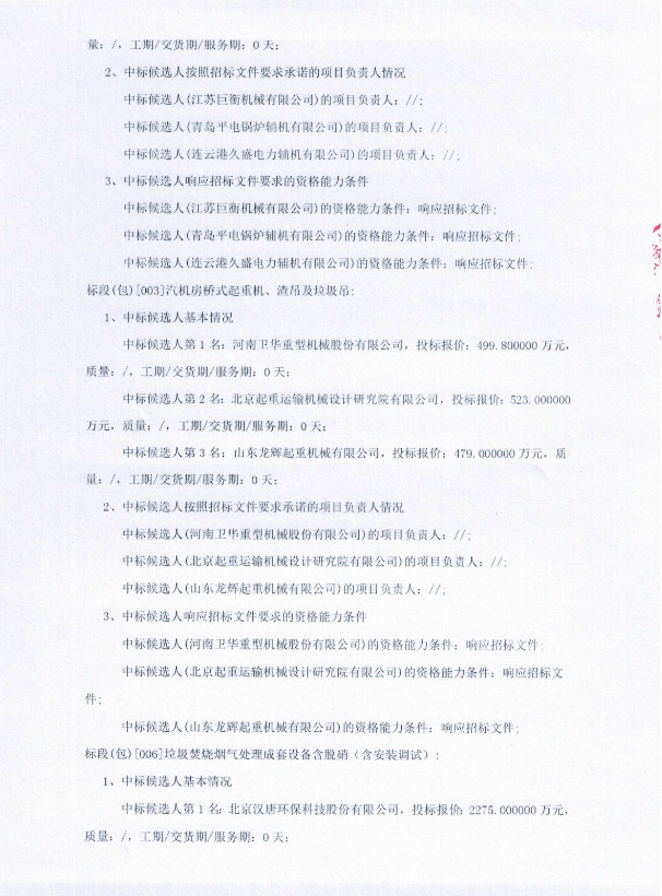 移動(dòng)版:陜西楊凌垃圾發(fā)電工程汽機(jī)房橋式起重機(jī)設(shè)備招標(biāo)采購(gòu)中標(biāo)候選人公示