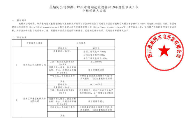 移動(dòng)版:柳洪水電站柳洪水電站、坪 頭水電站門(mén)機(jī)起重機(jī)維保中標(biāo)候選人公示