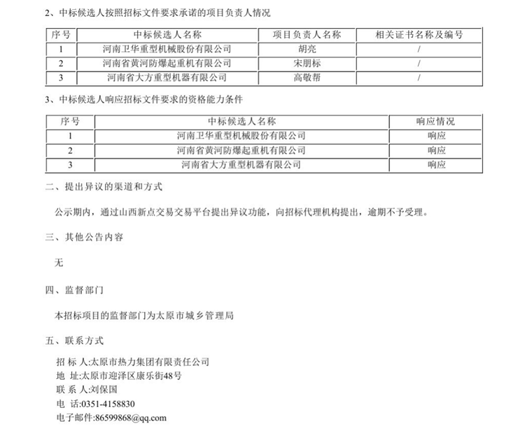移動版:太原市集中供熱工程東峰燃?xì)庹{(diào)峰熱源廠、城南熱源廠“煤改氣”一期續(xù)建、小店熱源廠“煤改氣”、太古工程項(xiàng)目所需起重機(jī)采購及服務(wù)中標(biāo)候選人公示