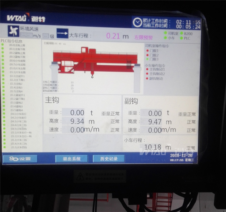 ▲WTSM-A型起重機(jī)安全監(jiān)控系統(tǒng)儀表界面