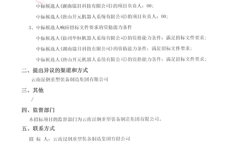云南昆鋼重型裝備制造集團有限公司起重機生產線智能化技改項目中標候選人公示