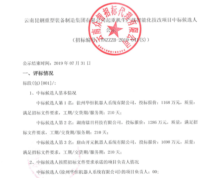 移動版:云南昆鋼重型裝備制造集團有限公司起重機生產線智能化技改項目中標候選人公示