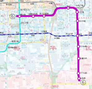 6號線一期工程西起槐中路與建華大街交叉口,沿槐中路向東敷設(shè),至新元高速線路向北轉(zhuǎn)至長江大道,沿長江大道向東敷設(shè),經(jīng)過天山南大街,至昆侖大街轉(zhuǎn)向南,沿昆侖大街向南敷設(shè),終點站為南三環(huán)以北昆侖大街上的東佐路站。線路全長約15.76千米,共設(shè)站11座,平均站間距約為1.5千米,其中換乘站3座。