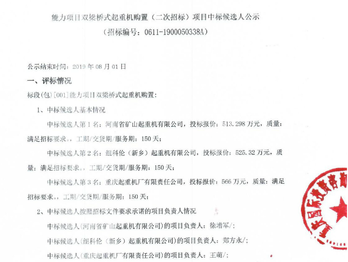 移動(dòng)版:能力項(xiàng)目雙梁橋式起重機(jī)購(gòu)置(二次招標(biāo))項(xiàng)目中標(biāo)候選人公示
