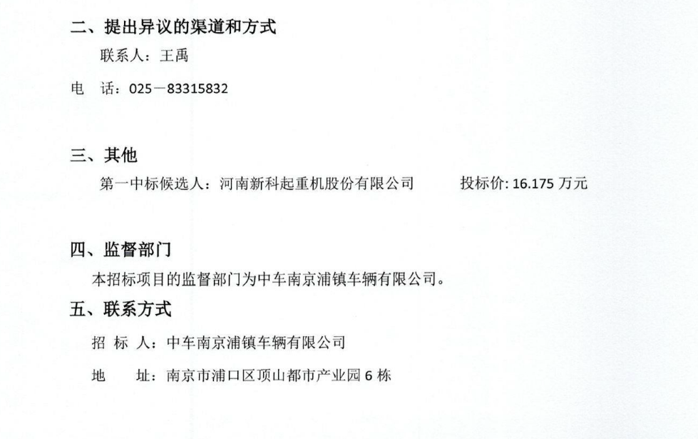 移動版:中車南京浦鎮(zhèn)車輛有限公司車體車間起重機(jī)設(shè)備備件采購中標(biāo)候選人公示