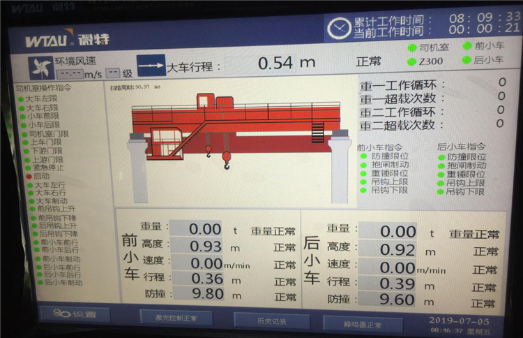 通過加裝安全監(jiān)控系統后,實現了對設備整個控制系統運行的各個環(huán)節(jié)和重要安全狀態(tài)的實時監(jiān)測,并產生相應預警提示操作人員,起重司機能通過此系統在設備運行過程中,對各個機構安全狀態(tài)參數有一個全面而直觀的了解。原滑觸線三相三線改為三線四項為載荷運行中提供最基礎安全保證。