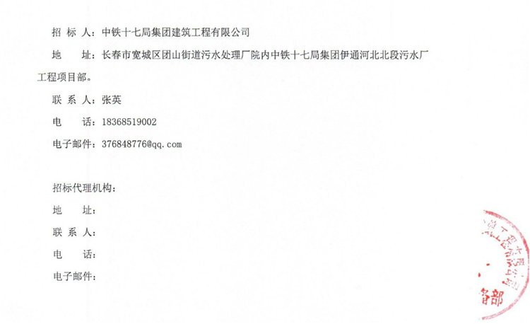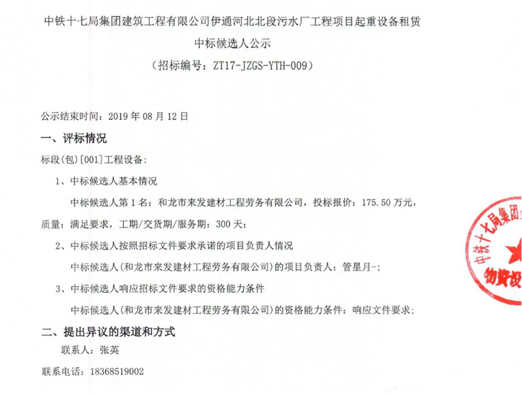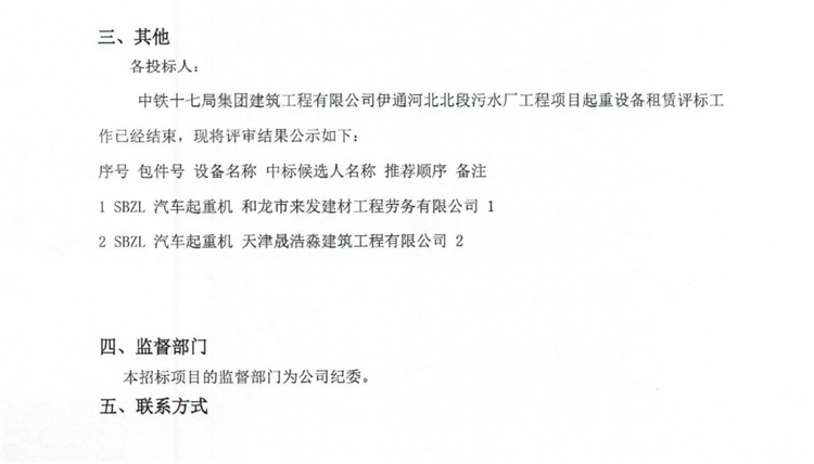 移動(dòng)版:中鐵十七局集團(tuán)建筑工程有限公司伊通河北北段污水廠工程項(xiàng)目起重設(shè)備租賃中標(biāo)候選人公示