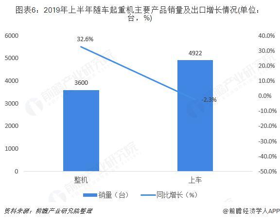 2019年上半年,我國(guó)隨車(chē)起重機(jī)銷(xiāo)量增速大幅下降至10%以下,主要是受上車(chē)產(chǎn)品銷(xiāo)售下降的影響。2019年上半年,隨車(chē)起重機(jī)整機(jī)3600臺(tái),同比增加885臺(tái),長(zhǎng)32.6%;上車(chē)4922臺(tái),同比少116臺(tái),下降2.3%。