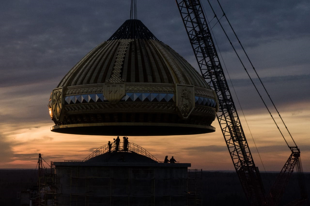 俄羅斯陸軍大教堂吊裝80噸重的穹頂