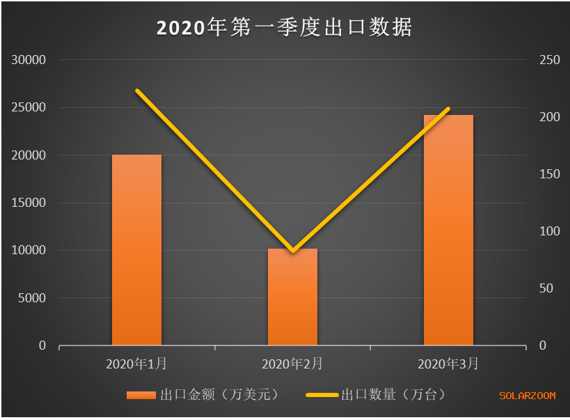 與2019年同期相比,今年第一季度逆變器出口額下降1.84%。由于每年春節(jié)長假的原因,第一季度基本是逆變器出口額最低的一個(gè)季度。雖然在1月下旬2月初開始,國內(nèi)由于疫情等限制措施影響了光伏制造企業(yè)的復(fù)工率,但是由于廠家自有庫存以及人員調(diào)班制等原因,逆變器生產(chǎn)出口受國內(nèi)疫情影響不明顯。此外,海外市場的疫情是從3月底開始進(jìn)入爆發(fā)階段,預(yù)計(jì)第二季度的出口數(shù)據(jù)可能出現(xiàn)一定的波動(dòng)。