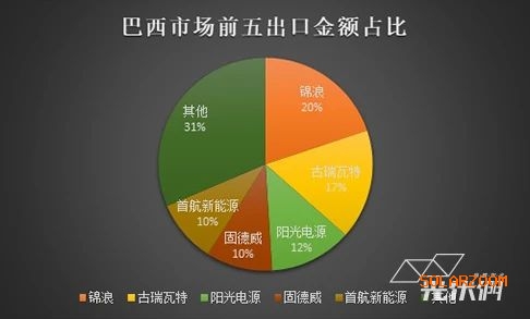 巴西市場主要的并網(wǎng)逆變器出口廠家包括錦浪、古瑞瓦特、陽光電源、固德威、首航新能源、華為等。按照出口金額統(tǒng)計(jì)各家占比份額如下: