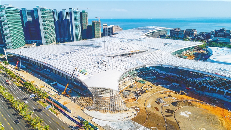 6月12日,航拍正在加緊建設中的海南國際會展中心二期項目。目前,海南國際會展中心二期項目外立面幕墻裝飾以及內(nèi)部裝修均已進入收尾階段,預計6月底全面完工。