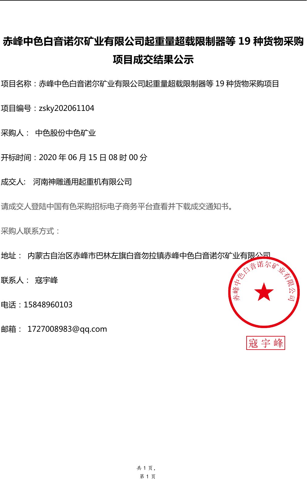 移動(dòng)版:赤峰中色白音諾爾礦業(yè)有限公司起重量超載限制器等19種貨物采購項(xiàng)目成交公示
