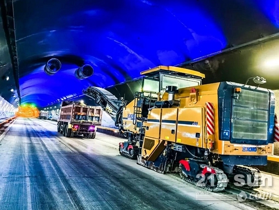 近日,連云港云臺(tái)山隧道進(jìn)行翻修施工,隧道全長(zhǎng)3公里為省內(nèi)之最,是聯(lián)通該區(qū)域南北之間通行的重要通道。鑒于隧道施工的安全要求及水泥路面的銑刨能力要求,經(jīng)過(guò)綜合考量,施工方最終使用徐工大型銑刨機(jī)XM200KⅡ負(fù)責(zé)本次隧道內(nèi)水泥路面銑刨。