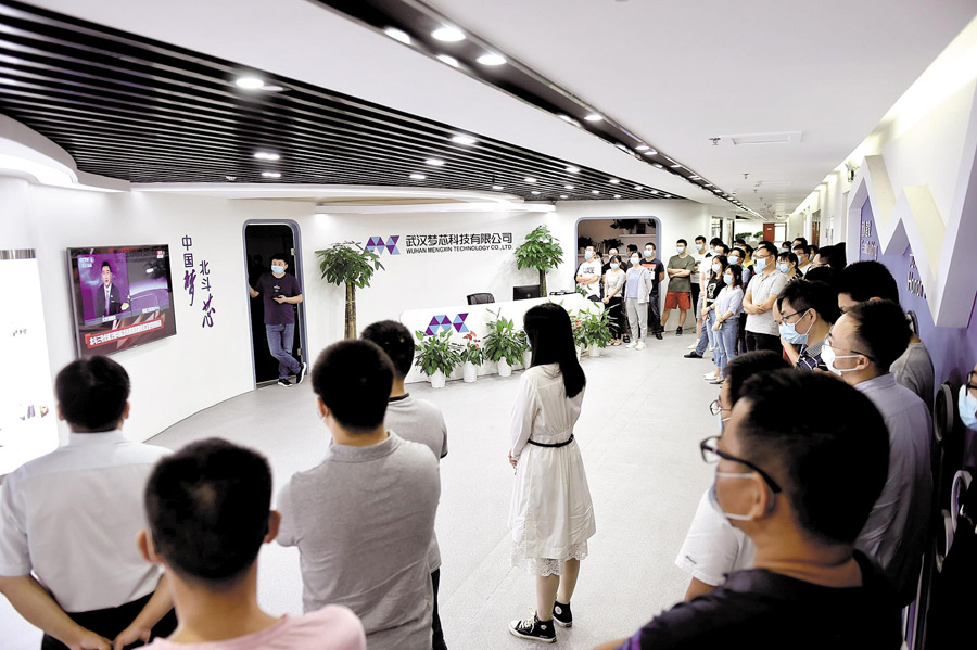 6月23日,武漢夢芯科技有限公司員工收看北斗三號最后一顆衛(wèi)星升空的電視直播。 (湖北日報全媒記者 李溪 通訊員 舒睿 攝)