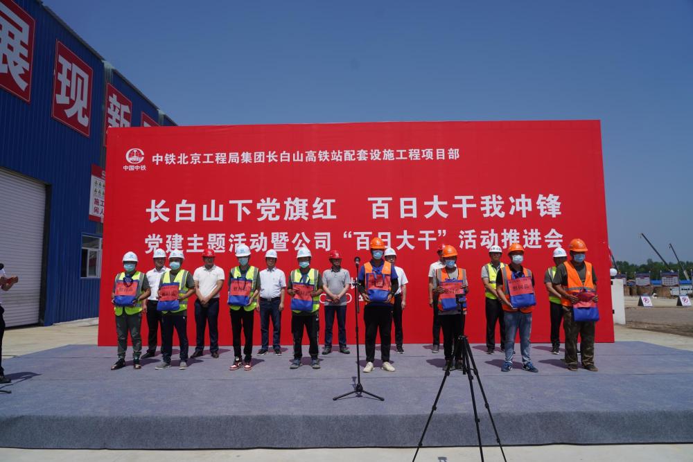7月9日,中鐵北京工程局六公司在長(zhǎng)白山高鐵站配套設(shè)施項(xiàng)目部開(kāi)展“長(zhǎng)白山下黨旗紅,百日大干我沖鋒”黨建主題活動(dòng)暨“大干100天”推進(jìn)會(huì)活動(dòng)。