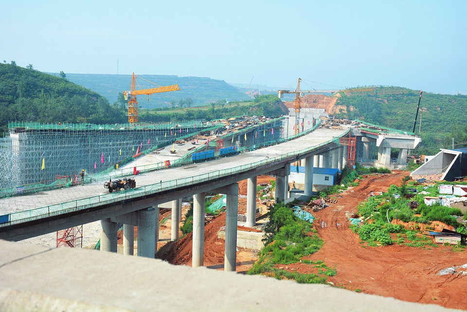 7月15日,處于垣澠高速公路與聞垣高速公路交接部位的車家溝大橋在緊張施工。垣澠高速南起河南澠池,北至山西垣曲,全長約63公里。其中,山西段長約21公里,預(yù)算總投資50億元,工期3年,項目建成后將對促進晉豫兩省經(jīng)濟發(fā)展產(chǎn)生深遠(yuǎn)影響。(來源:山西日報 文哲 攝)