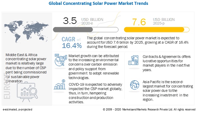 根據(jù)國際市場研究機(jī)構(gòu)Markets and Markets日前發(fā)布的報告,到2025年,全球聚光太陽能市場規(guī)模預(yù)計將達(dá)到76億美元,復(fù)合年增長率為16.4%,而2020年則為35億美元。