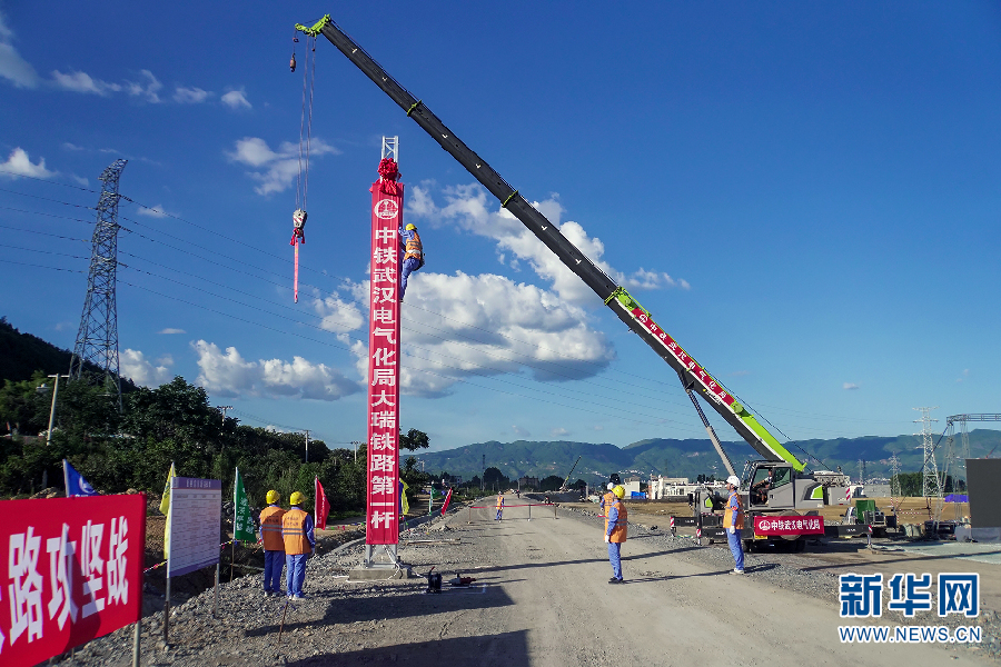 大瑞鐵路接觸網(wǎng)立下第一桿(陳暢 攝)