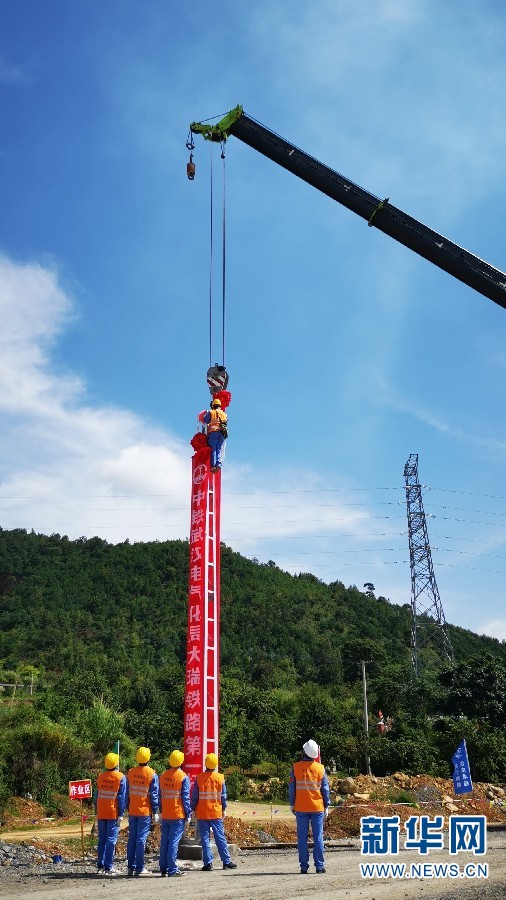 大瑞鐵路接觸網(wǎng)立下第一桿(楊華 攝)