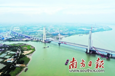 南沙港鐵路跨西江斜拉橋合龍