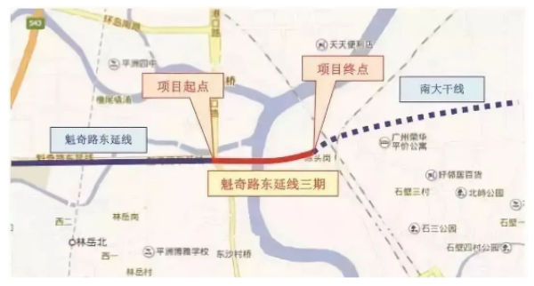 番海大橋位于三山新城南側(cè),毗鄰廣州南站,是南海、番禺兩區(qū)開建的第二座“牽手橋”。大橋呈東西走向,起于魁奇路與港口路交叉口,跨越陳村水道,與廣州市南大干線相接。