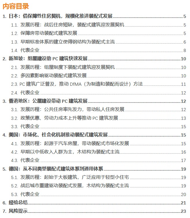 4、從結(jié)構(gòu)體系看,發(fā)達經(jīng)濟體依據(jù)各自國情地區(qū)等特點,出現(xiàn)差異化發(fā)展。我國現(xiàn)階段裝配式建筑的應(yīng)用場景主要在經(jīng)濟發(fā)達的城市,人口密度大,與新加坡和香港地區(qū)類似,且成本相比鋼結(jié)構(gòu)、木結(jié)構(gòu)更低,因此PC結(jié)構(gòu)建筑占據(jù)主導地位;鋼結(jié)構(gòu)在超高層建筑以及部分試點的保障住房領(lǐng)域正在拓展。隨著裝配式建筑在我國的快速發(fā)展,我們認為未來有機會滲透到三四線城市以及鄉(xiāng)村等欠發(fā)達地區(qū),此時鋼結(jié)構(gòu)或?qū)⒊霈F(xiàn)一定比例的增長。