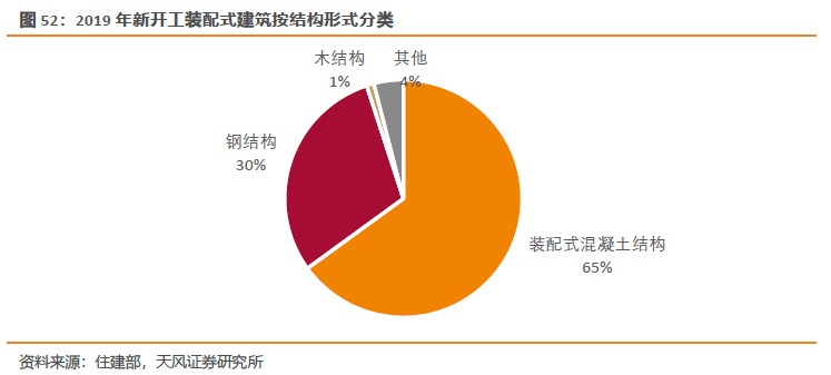 2019年我國新建裝配式建筑中PC結(jié)構(gòu)占比65%,鋼結(jié)構(gòu)占比30%。其中,考慮到成本、居住舒適度等因素,民用住宅多采用PC結(jié)構(gòu)。隨著裝配式建筑在我國的快速發(fā)展,我們認為未來有機會滲透到三四線城市以及鄉(xiāng)村等欠發(fā)達地區(qū),此時鋼結(jié)構(gòu)或?qū)⒊霈F(xiàn)一定比例的增長。