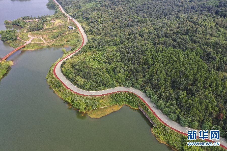這是9月2日在重慶市銅梁區(qū)玄天湖拍攝的西郊綠道(無(wú)人機(jī)照片)。 新華社記者 黃偉 攝