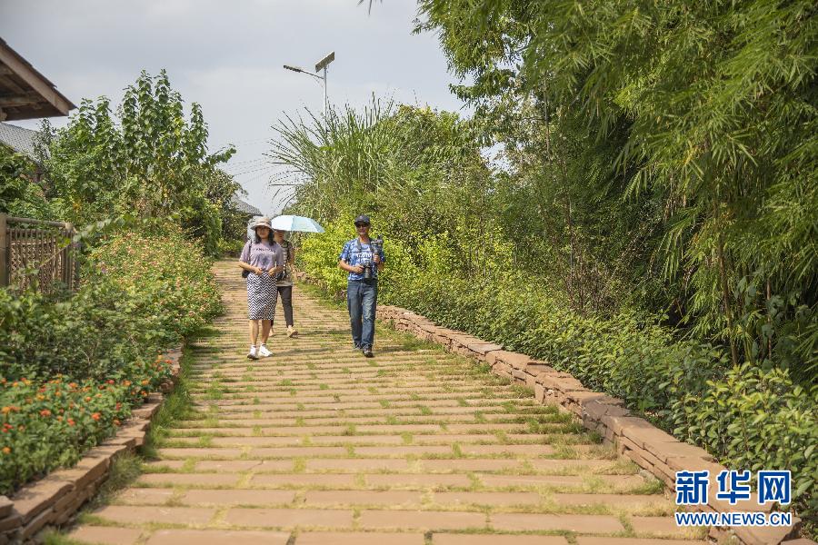 9月1日,在重慶市銅梁區(qū)巴川街道玉皇村,游客在西郊綠道旁人居環(huán)境整治提升后的村內(nèi)觀光游玩。新華社記者 黃偉 攝