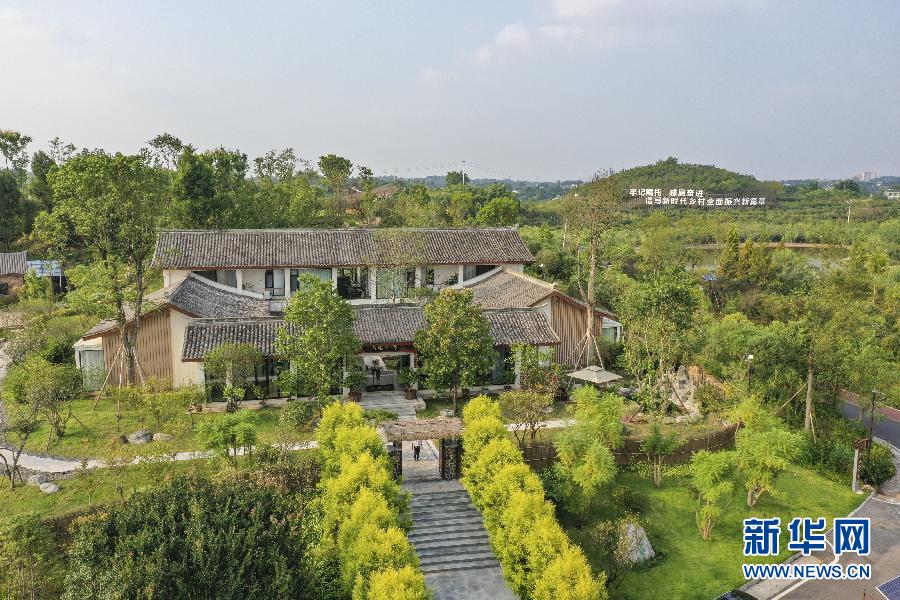 這是9月1日在重慶市銅梁區(qū)南城街道西來(lái)村西郊綠道旁拍攝的西郊雅舍民宿(無(wú)人機(jī)照片)。新華社記者 黃偉 攝