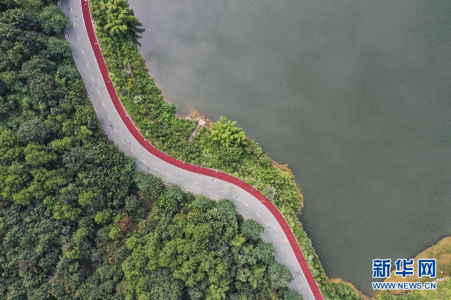 這是9月2日在重慶市銅梁區(qū)玄天湖拍攝的西郊綠道(無(wú)人機(jī)照片)。新華社記者 黃偉 攝