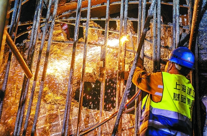 工人拆解鋼筋,等待盾構(gòu)機(jī)貫通。孟雨涵 攝