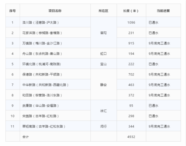 主管完工通水的5條積水點改善道路分別是:洛川路(涇惠路-滬太路)、宋園路(古羊路-紅松路)、花家浜路(棕櫚路-香樟路)、環(huán)鎮(zhèn)北路(桃浦河-南陳路) 、武康路(華山路-安福路)。其中,位于普陀區(qū)的洛川路(涇惠路-滬太路),為11條積水點改善道路中最長的一條,有1096米。