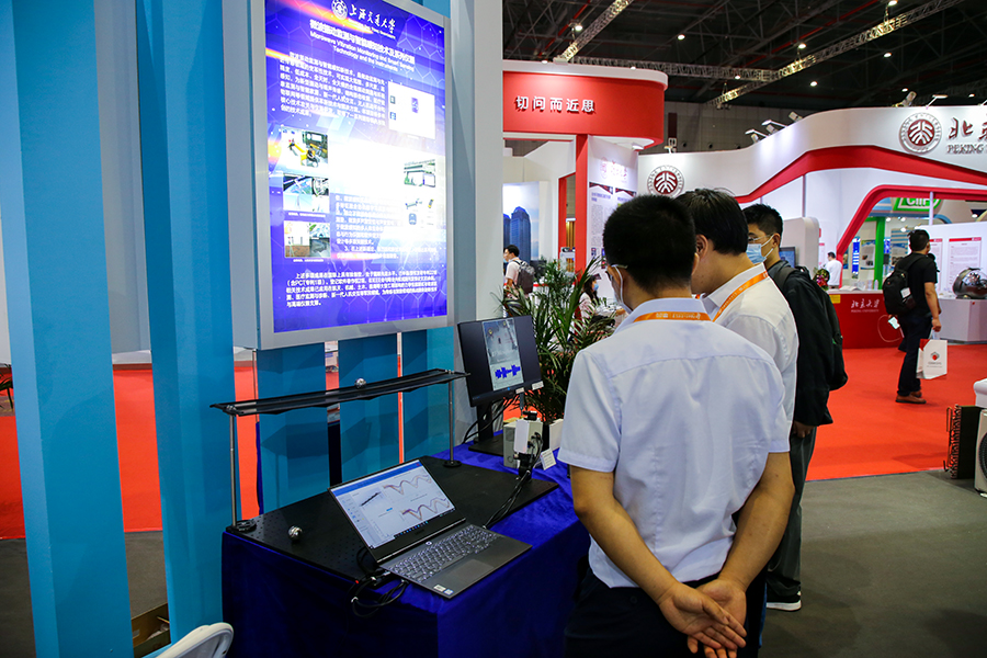 上海交大展出的微波振動(dòng)監(jiān)測(cè)與智能感知技術(shù)及設(shè)備。新華網(wǎng)吳一航 攝