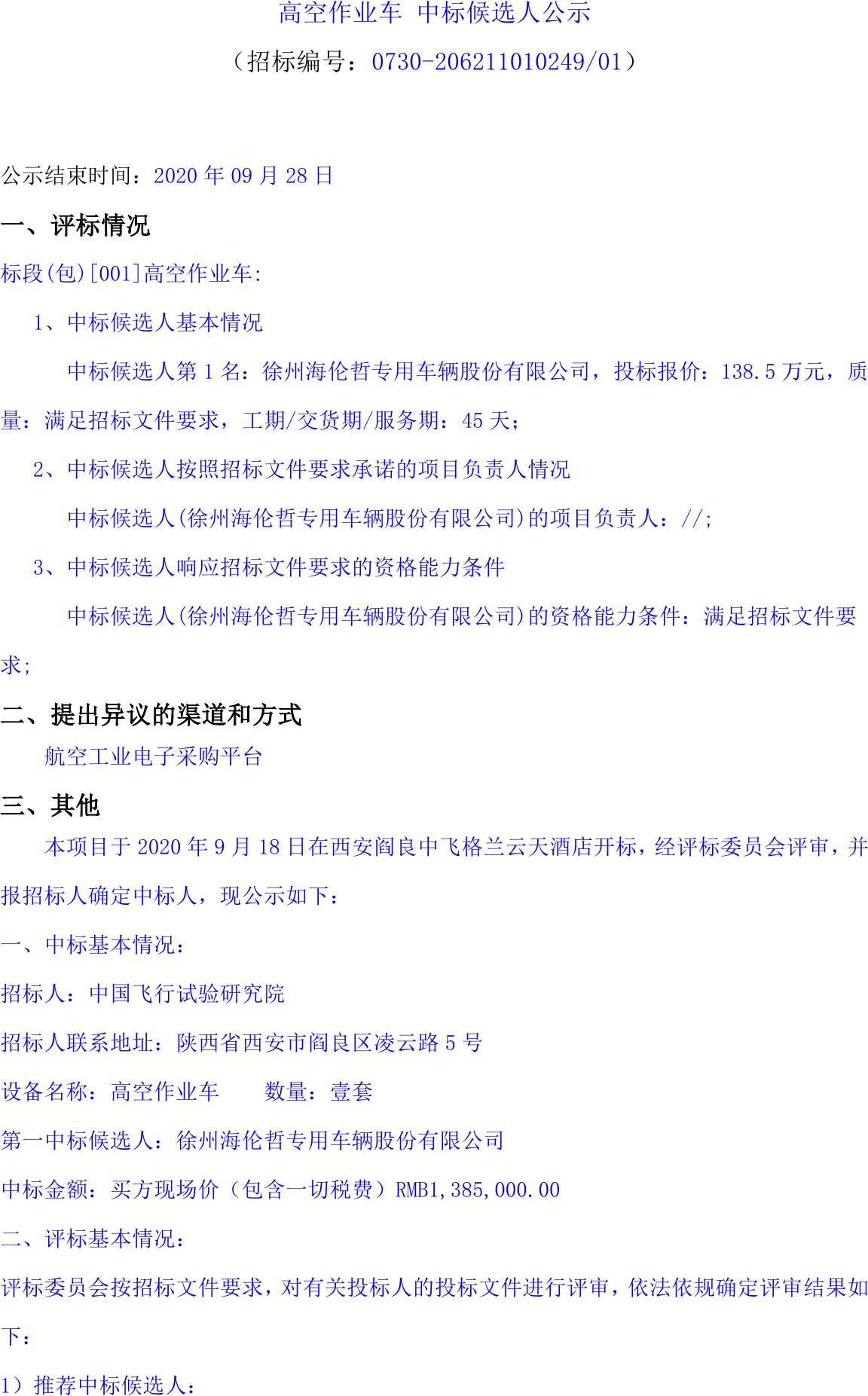 移動(dòng)版:高空作業(yè)車中標(biāo)候選人公示