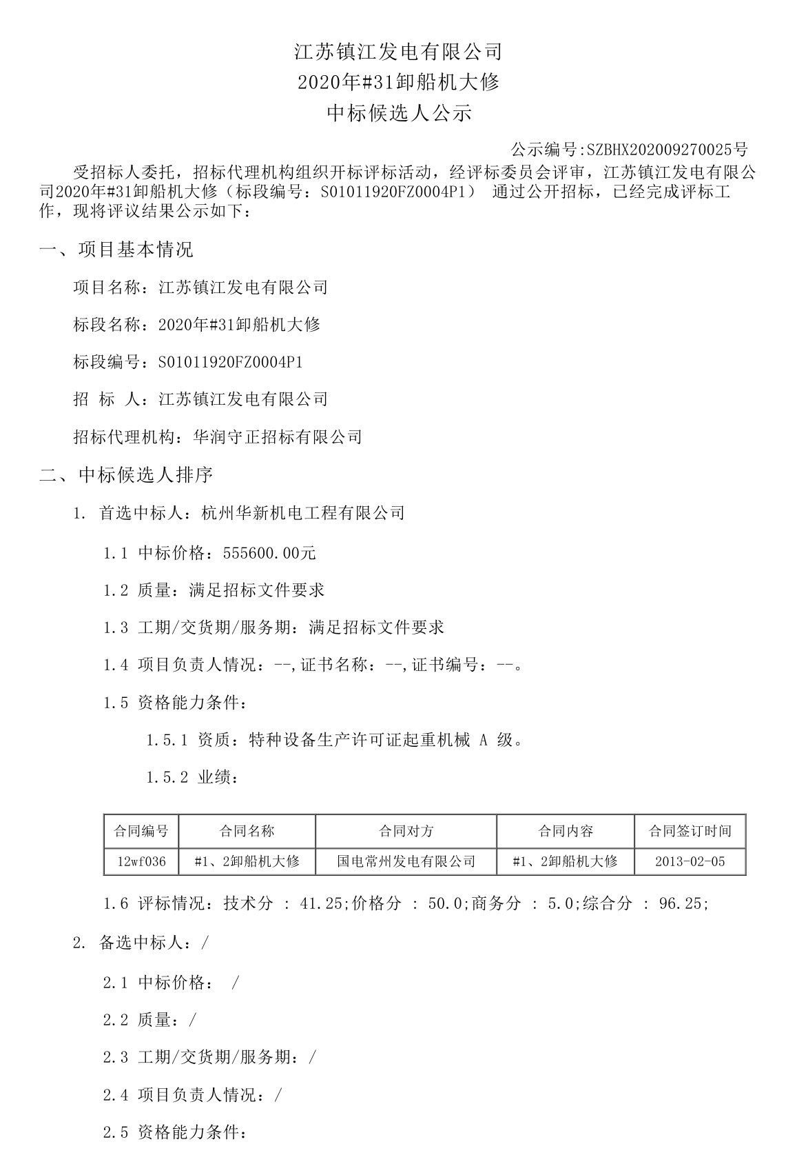 移動(dòng)版:2020年#31卸船機(jī)大修中標(biāo)候選人公示