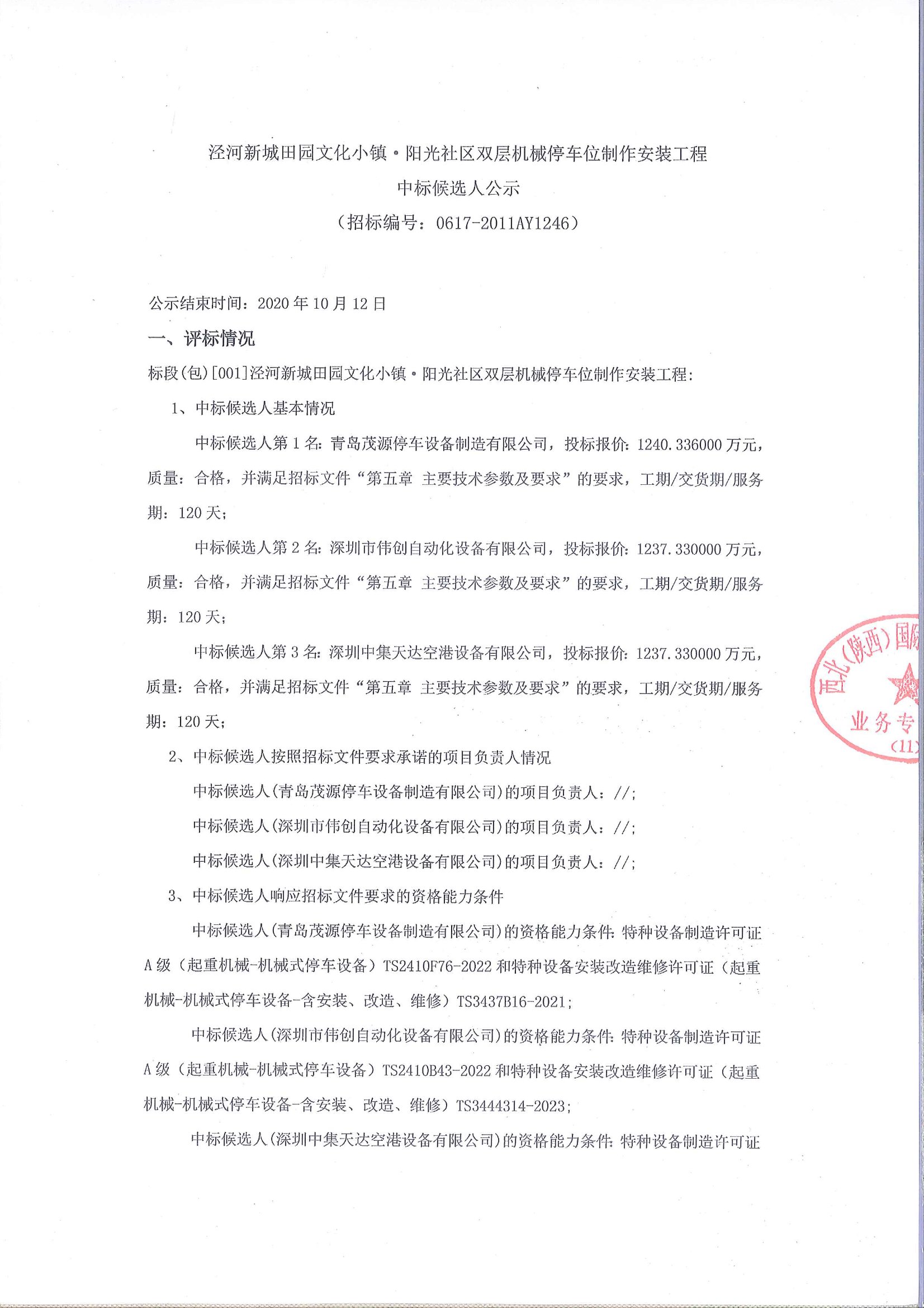 移動版:涇河新城田園文化小鎮(zhèn)·陽光社區(qū)雙層機(jī)械停車位制作安裝工程 中標(biāo)候選人公示