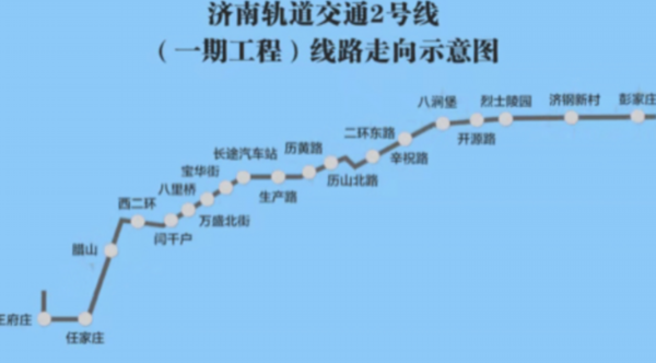 濟南軌道交通2號線走向示意圖(目前2號線地鐵車站站名均為工程名 )