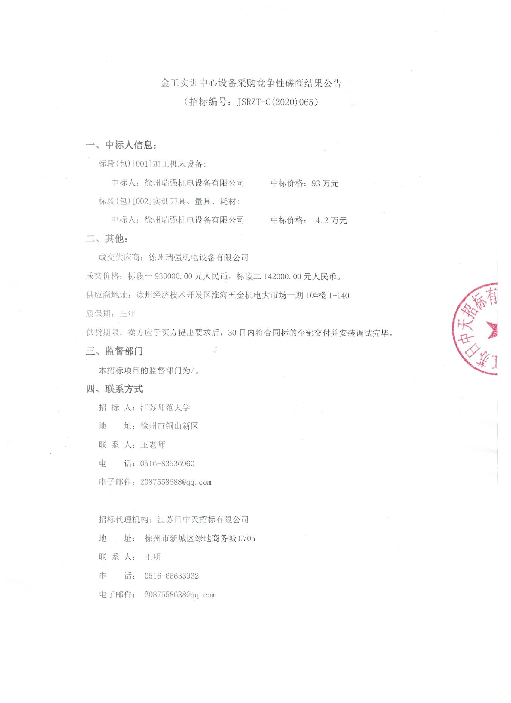 移動(dòng)版:金工實(shí)訓(xùn)中心設(shè)備采購(gòu)競(jìng)爭(zhēng)性磋商結(jié)果公告