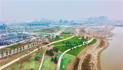 在西安國際港務(wù)區(qū)灞河兩岸提升改造工程現(xiàn)場(chǎng),大型機(jī)械車輛來回穿梭,工地一片忙碌。記者看到,岸邊市政道路、堤頂綠道和濱水步道基礎(chǔ)作業(yè)已全部完成。蜿蜒的綠廊兩側(cè),部分綠化已初具雛形。