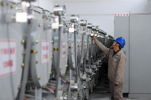 10月26日,天津送變電工程有限公司工作人員在進(jìn)行設(shè)備檢查。