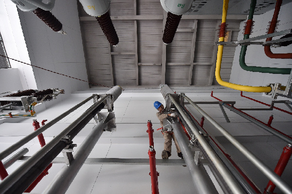 10月26日,天津送變電工程有限公司工作人員在進(jìn)行壓力檢查。