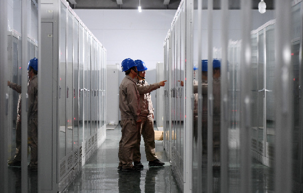 10月26日,天津送變電工程有限公司工作人員在變電站主控室內(nèi)進(jìn)行檢測(cè)工作。