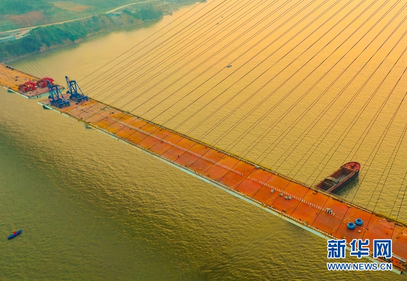 圖為武穴長江公路大橋順利實現(xiàn)合龍