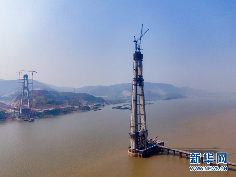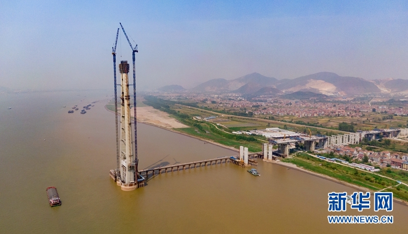 圖為武穴長江公路大橋建設(shè)中